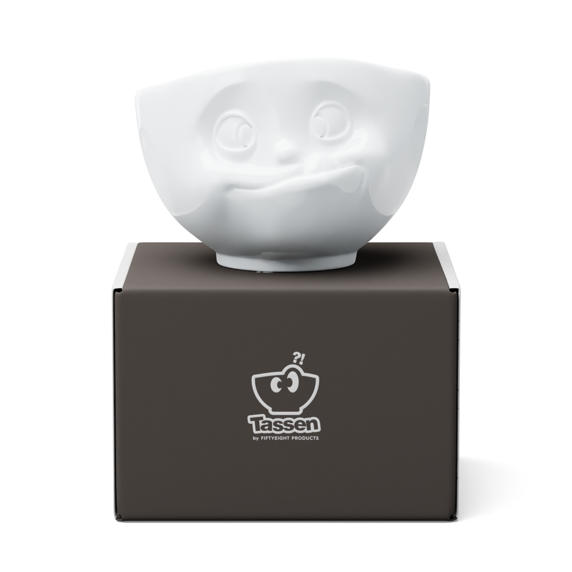 The large bowl features XL versions of four quirky facial expressions from our line-up: “Laughing”, “Grinning”, “Happy” and “Tasty”.
