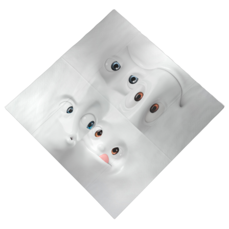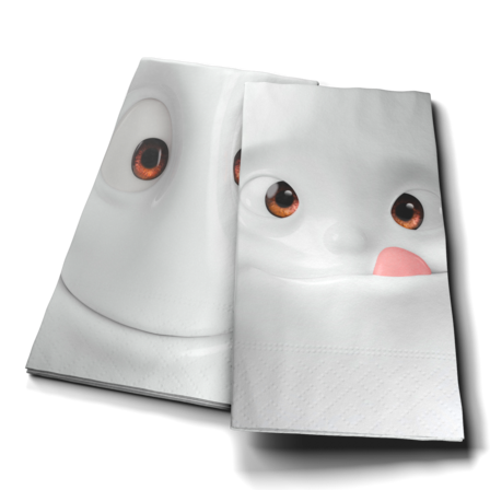 Our colorful paper napkins featuring zany TASSEN artwork elevate every meal into a TASSEN party. As the perfect pairing with our porcelain goods, they bring joy and emotions to the table. As the perfect pairing to fine dining, the buffet napkin “Face Pastrami” depicts a close-up shot of the “tasty” porcelain bowl on clean white background.
