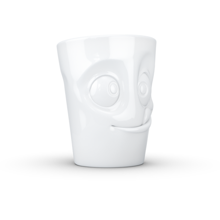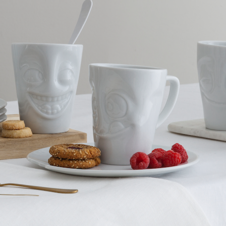 The Tasty Mug with handle is packing a super wide grin to start the day on a high note!