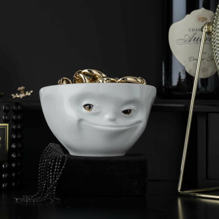Our medium “Grinning” bowl has always been heartbreaking, but now with colored eyes. Who can resist this look? Who doesn't look forward to a little extra round of ice cream or pudding or nuts or gummy bears or ......