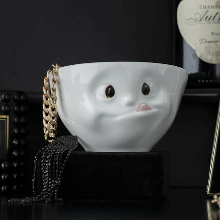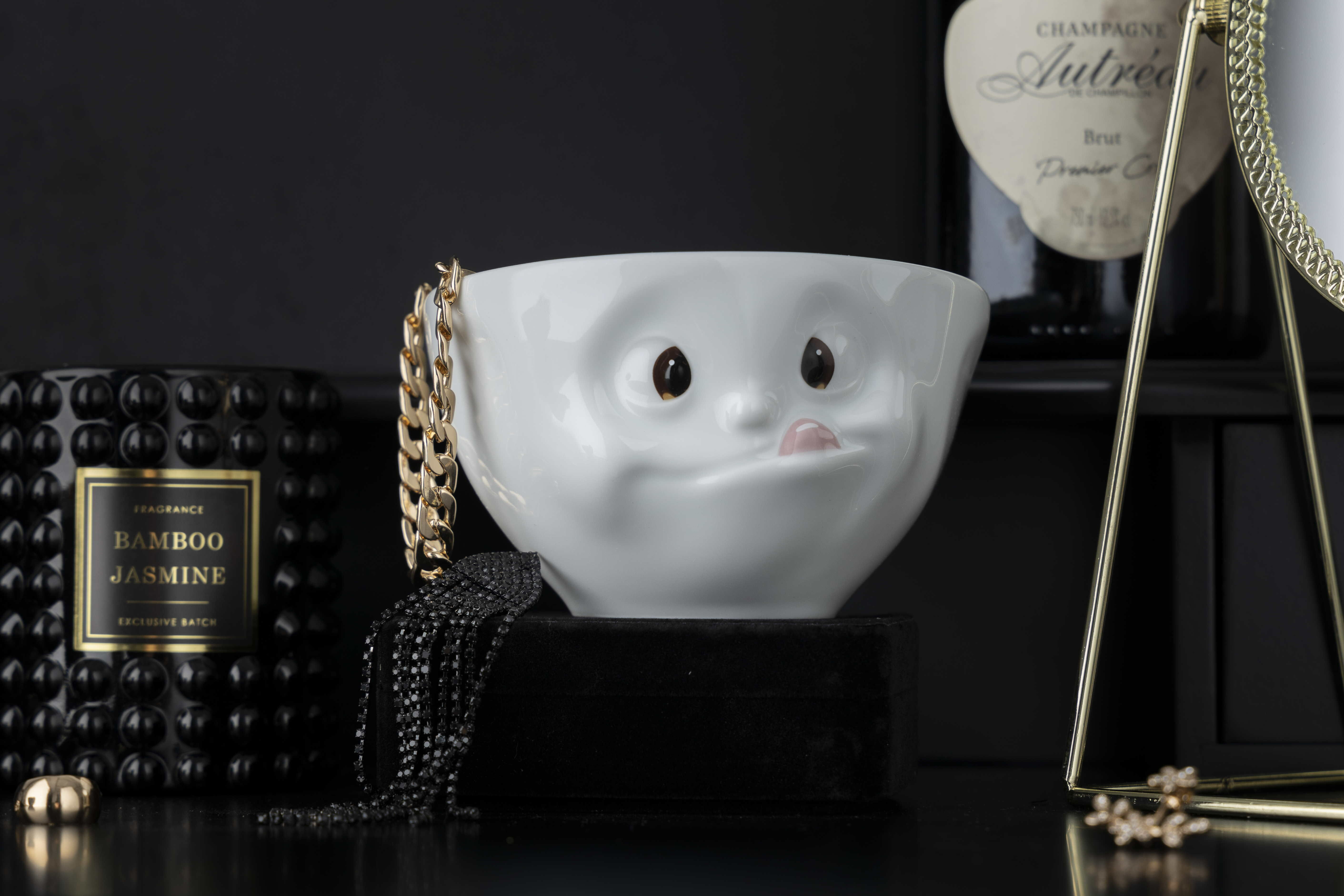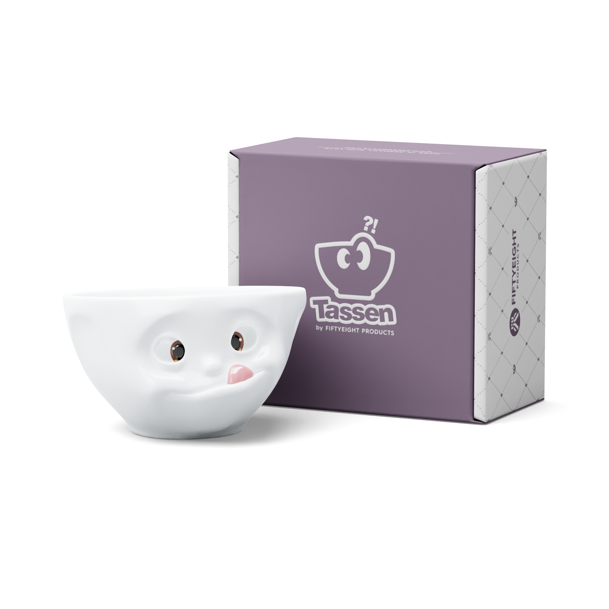 Our medium TASTY bowl has always been heartbreaking, but now with colored eyes and pink tongue. Who can resist this look? Who doesn't look forward to a little extra round of ice cream or pudding or nuts or gummy bears or ......
