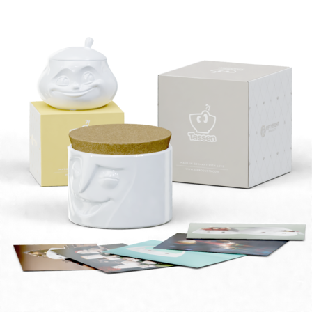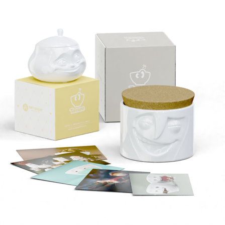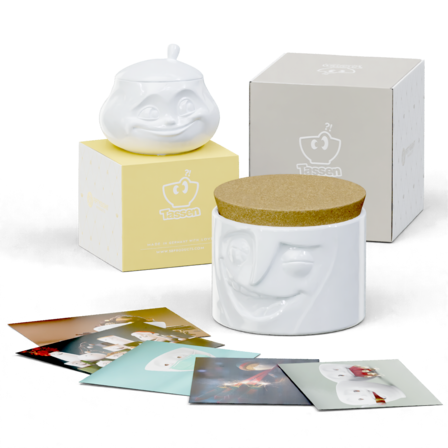 1x Storage jar CHEERFUL and 1x sugar bowl SWEET + 5 Postcards*