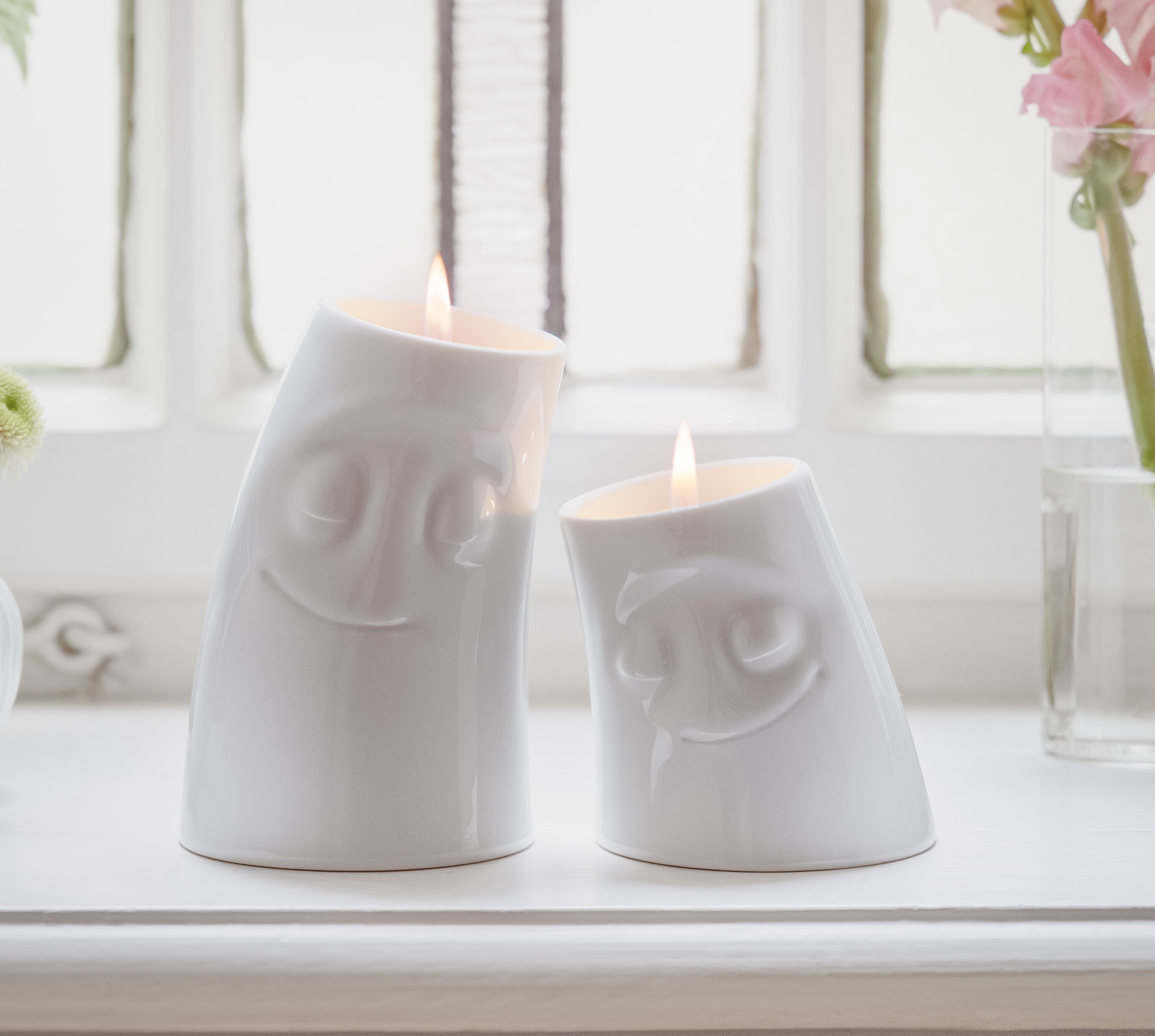 Starting off this new product line, the Candle Cuddlers will be available in two designs, each at a different height: CUDDLY and COZY. Each of these cuties ships in a nice gift box replete with a matching tea light to create a warm ambiance at home. All you need is a match – and the right person to cuddle with!