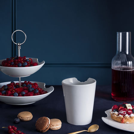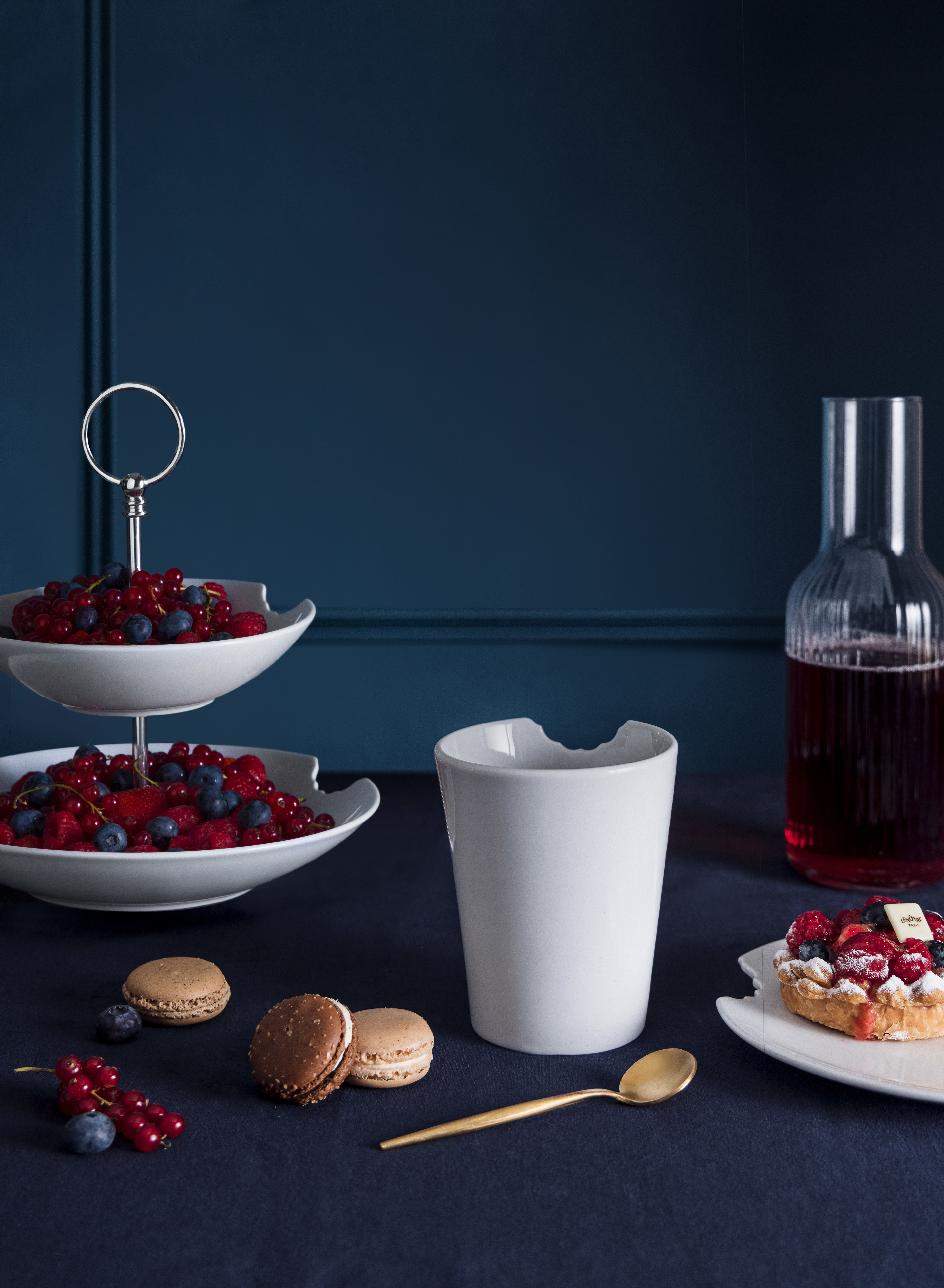 The new Mug with a Bite presents a substantial expansion of ‘bite mark’ serving ideas. As a new companion to plates in various sizes, the drinking mug serves a variety of beverages with that conversation-starting twist.