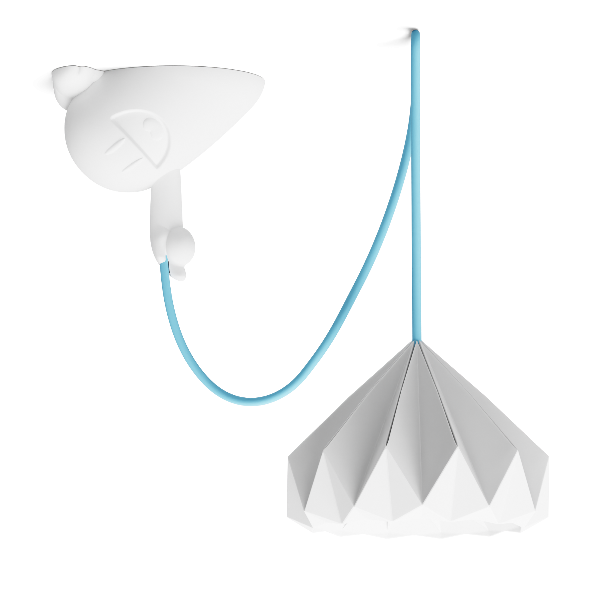 1x Happy Hermann, 1x Chestnut lampshade made of paper and 1x 3m long, fabric-coated, pastel blue cable