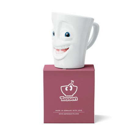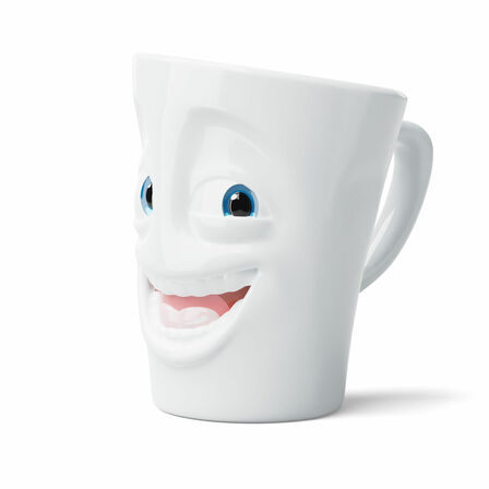 The joking Mug with handle is packing a super wide grin to start the day on a high note!