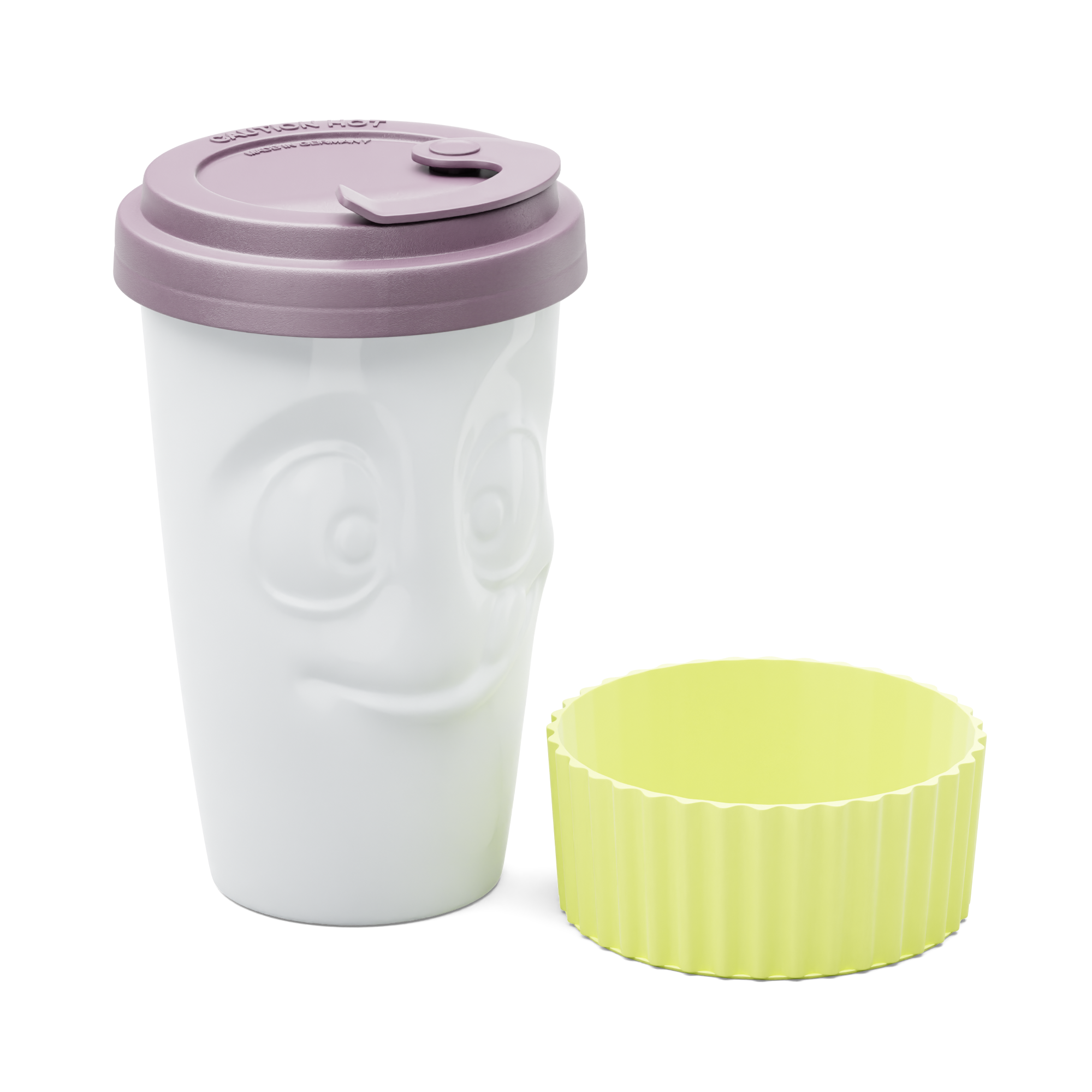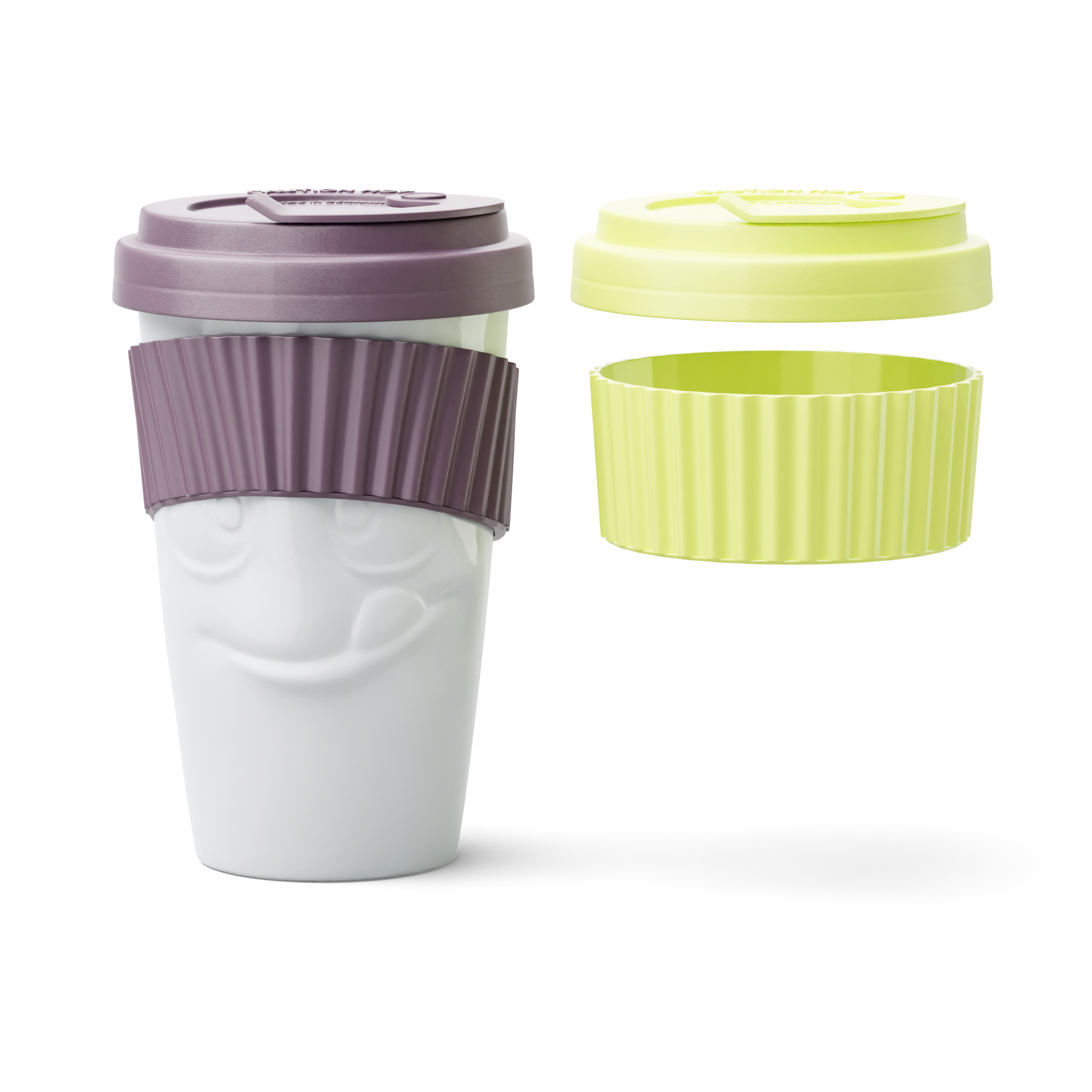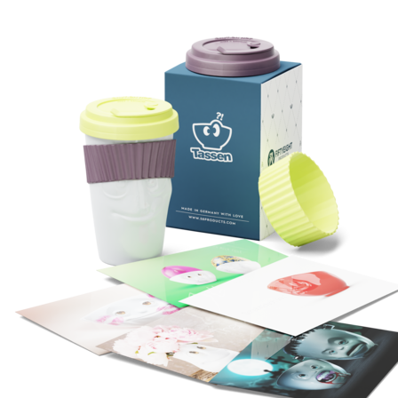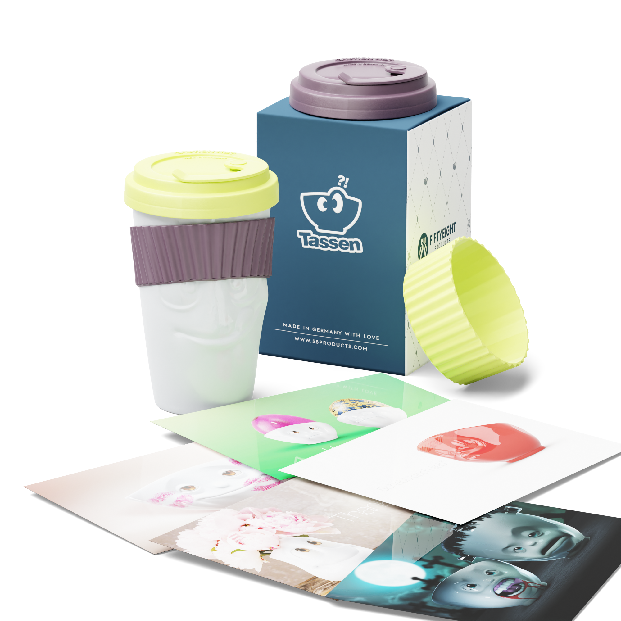 Trick or treat? Uh...Wineberry or Lime?...With our Halloween Set 4, you can change the colour of your Mug To Go, mix it up, or dress it up completely. We have put together the right colour combinations for you. All you have to do is decide which of the 4 sets you like best. With our Mug To Go Tasty in Wineberry you also get a sleeve and a lid in the colour Lime. And you will also get 5 funny postcards.