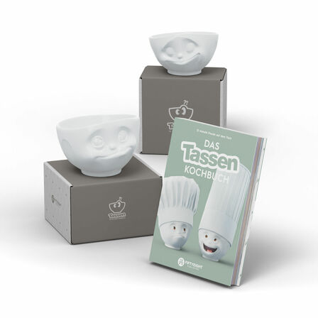 The TASSEN Cookbook (Only in German) + 500 ml bowl TASTY + 500 ml bowl HAPPY + 5 Postcards
