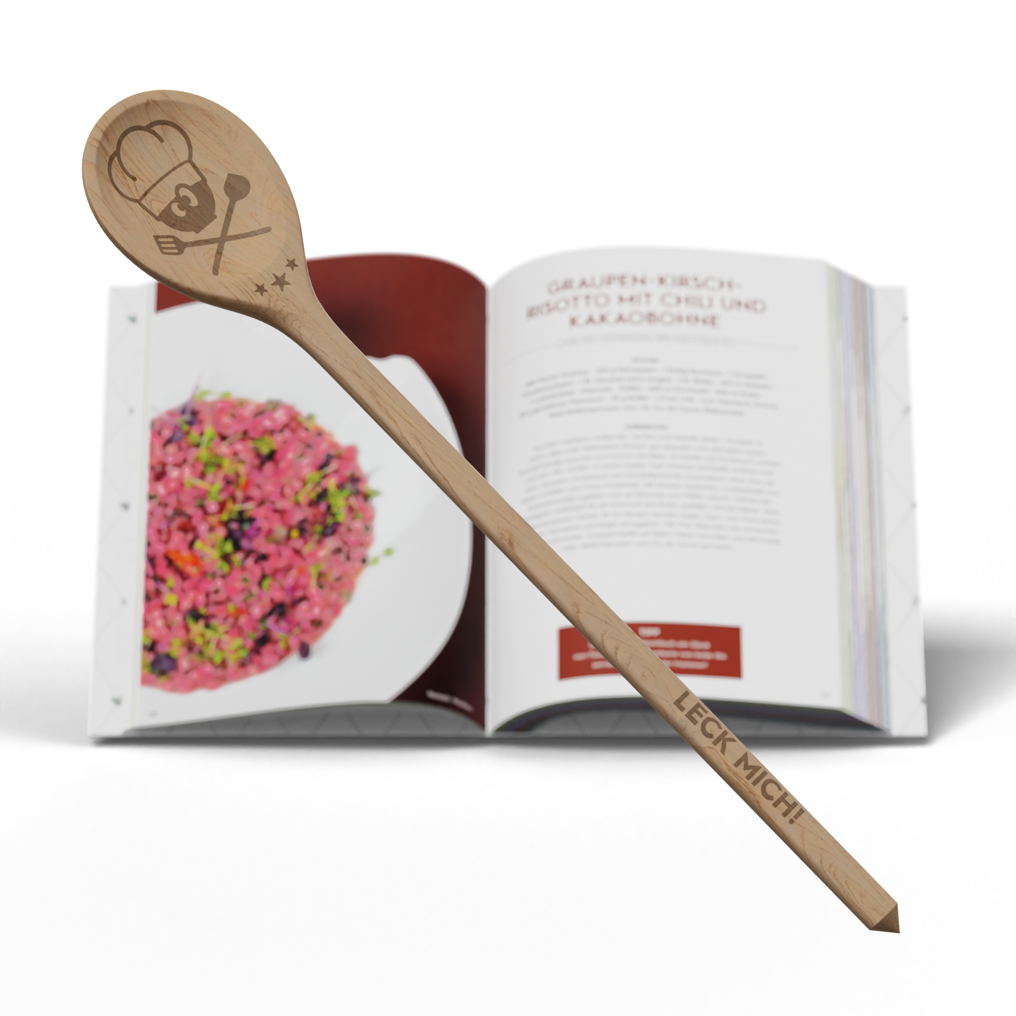 Branding with TASSEN Logo and Lick me written in German at the end of the Spoon