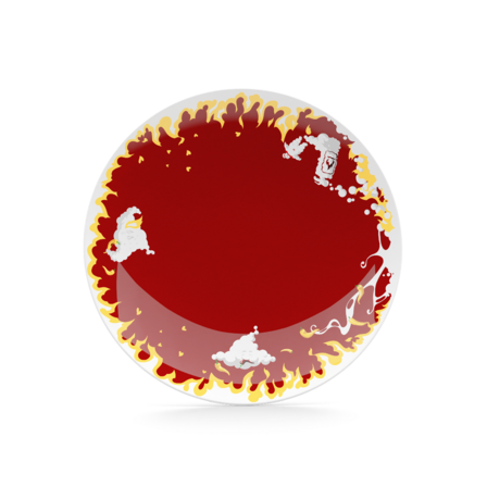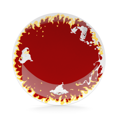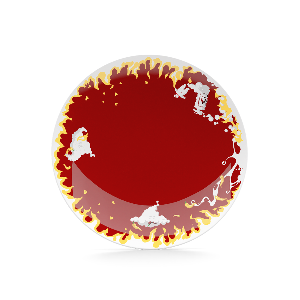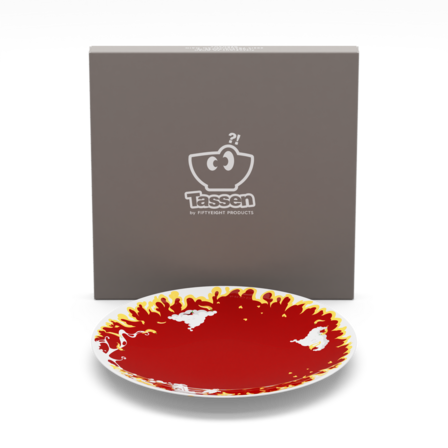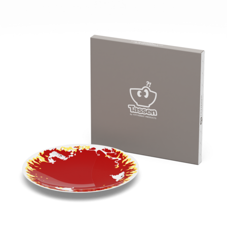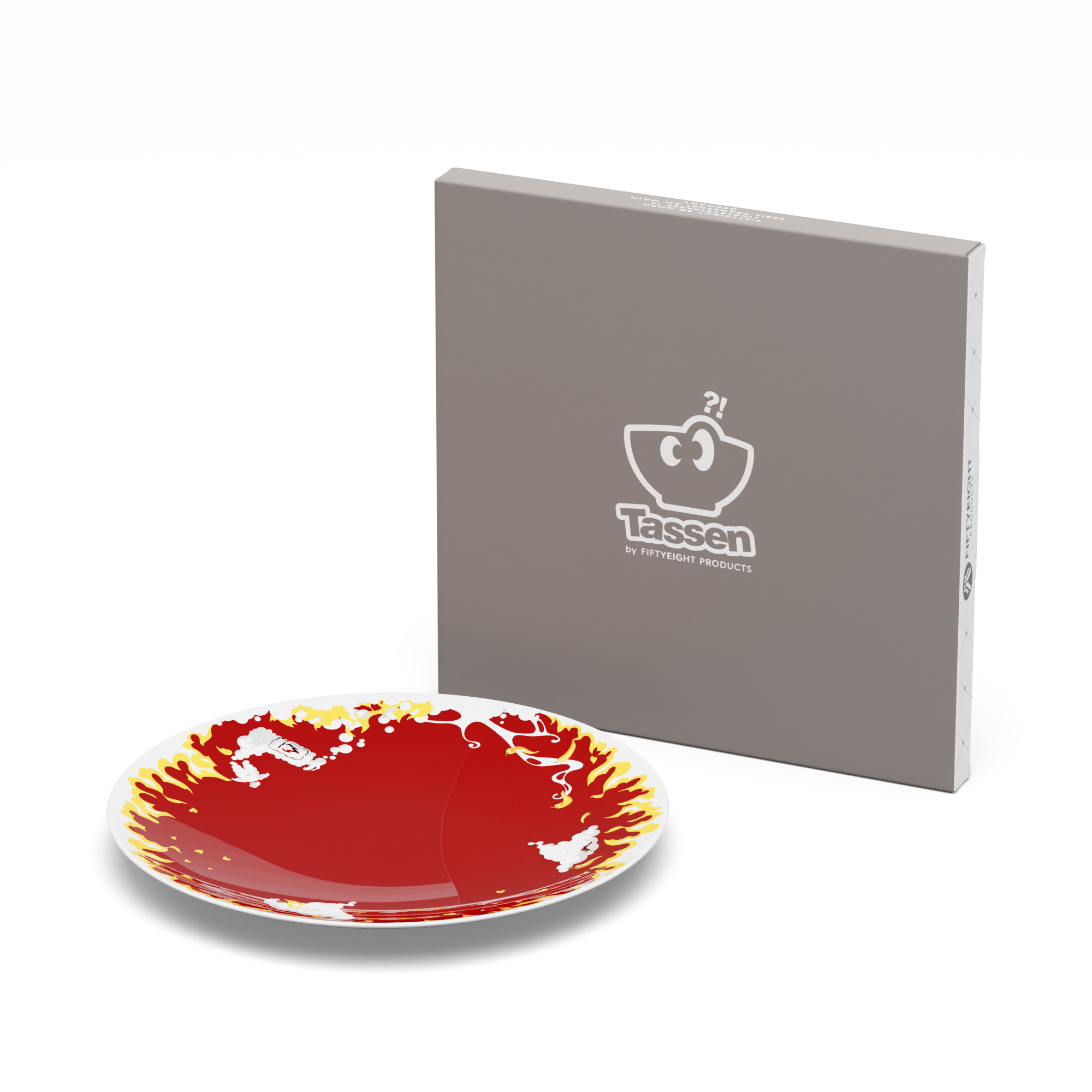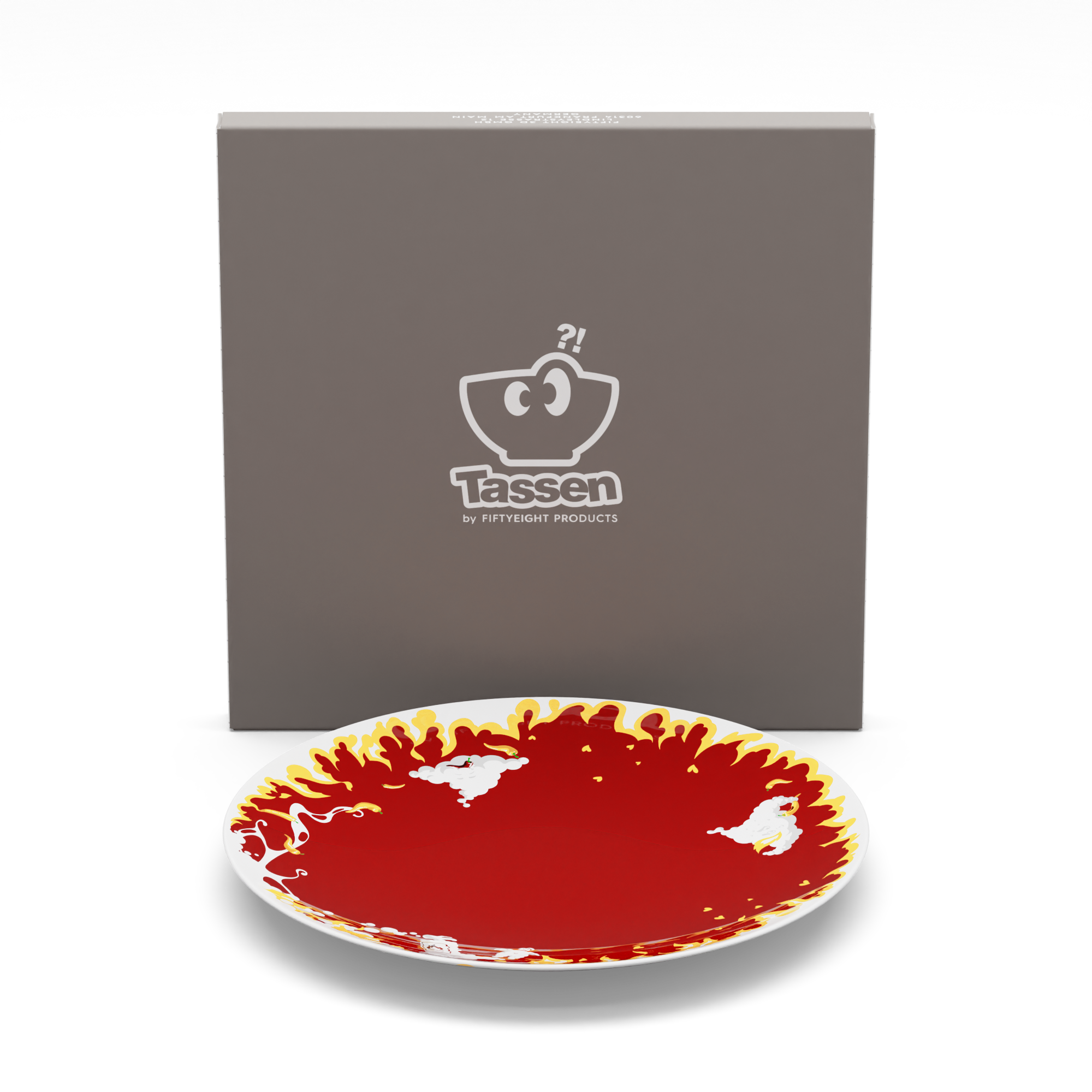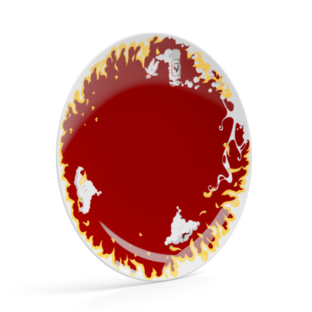 Our desert plate without bite is available as a Special Edition with red hot decoration, the plate comes single.