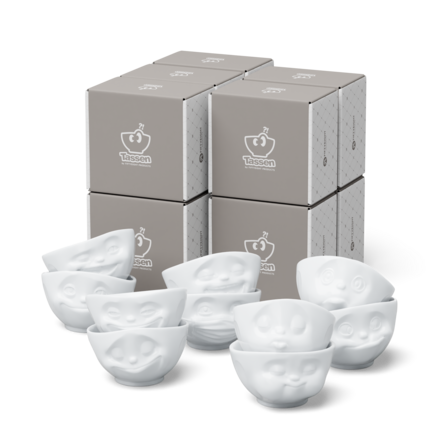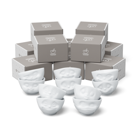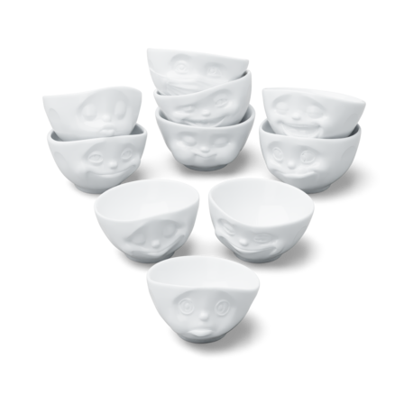 Our discounted bowl Universe contains all of our 10 bowls GRINNING, SULKING, KISSING, HAPPY, DREAMY, TASTY, LAUGHING, HOPEFUL, WINKING and MUNCHING + 5 postcards*.
