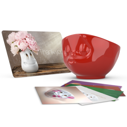 Our KISSING bowl red (500 ml) and the THANK YOU breakfast board