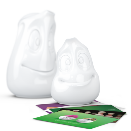 This Special Set contains the tea pot "Good mood" white, the small jug "Jolly" white and 5 beautiful postcards.
