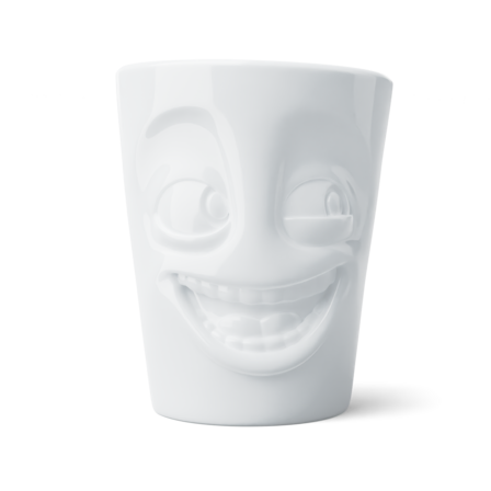 The joking Mug with handle is packing a super wide grin to start the day on a high note!