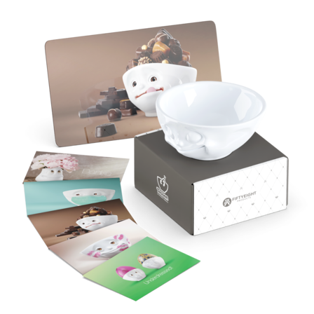 The sweet little Easter nest comes with our 350 ml Bowl HAPPY, Breakfast board SWEET CHOCO and 5 postcards.