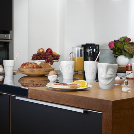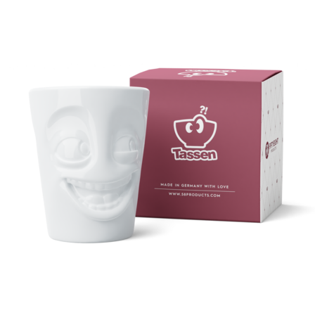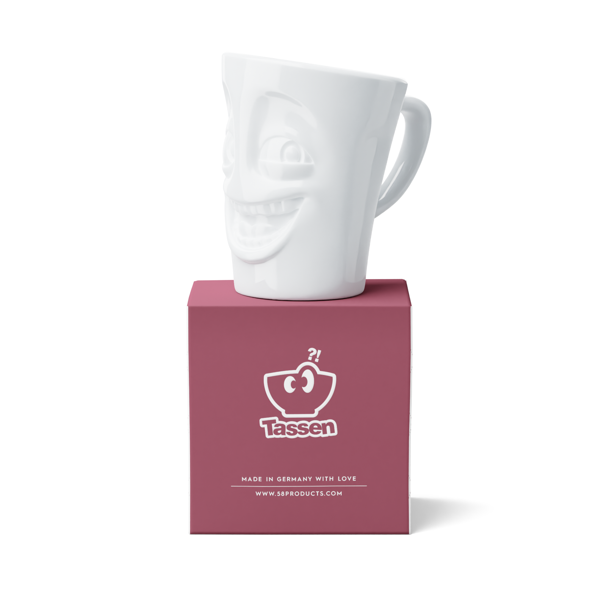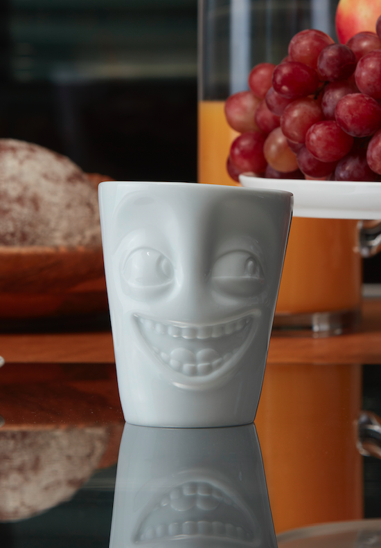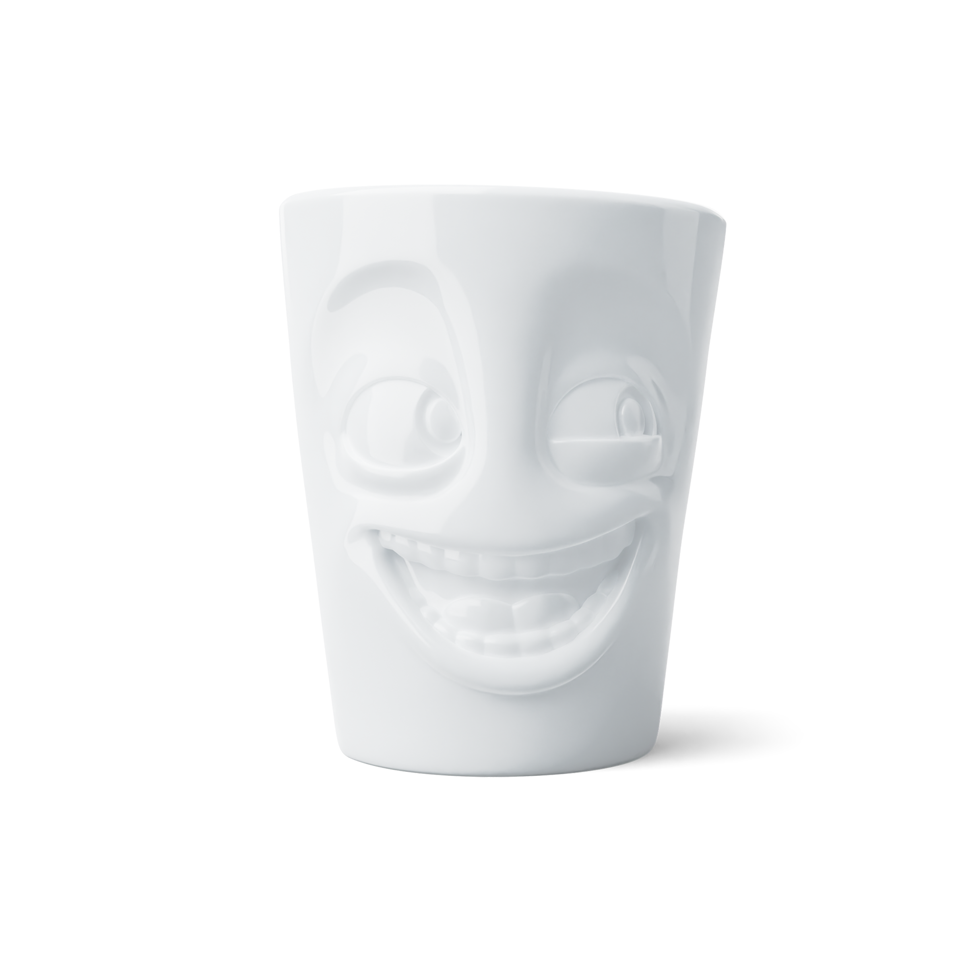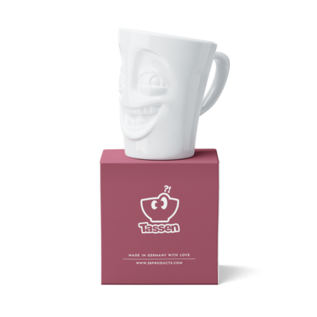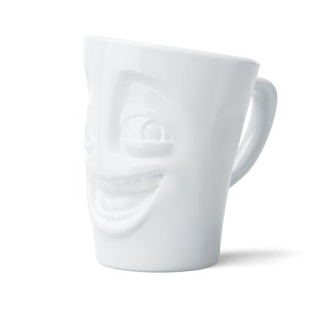 The joking Mug with handle is packing a super wide grin to start the day on a high note!