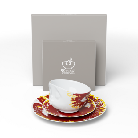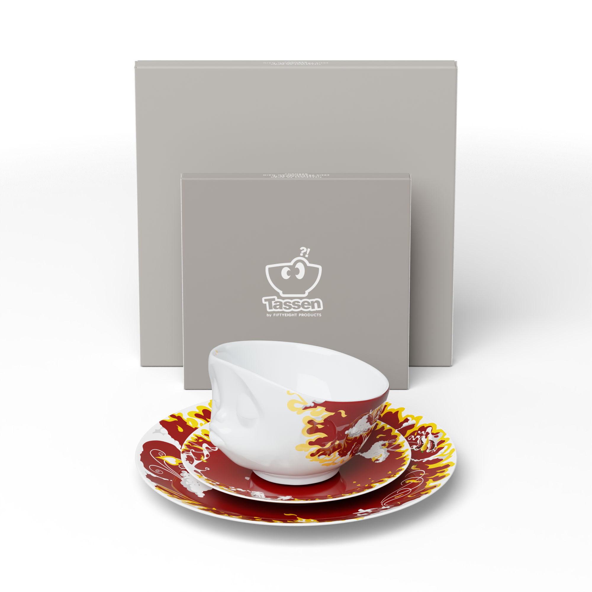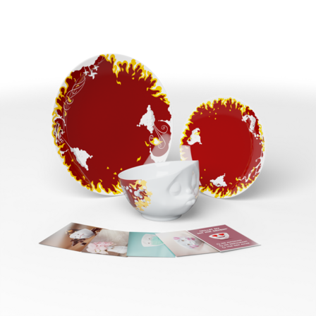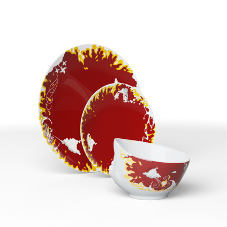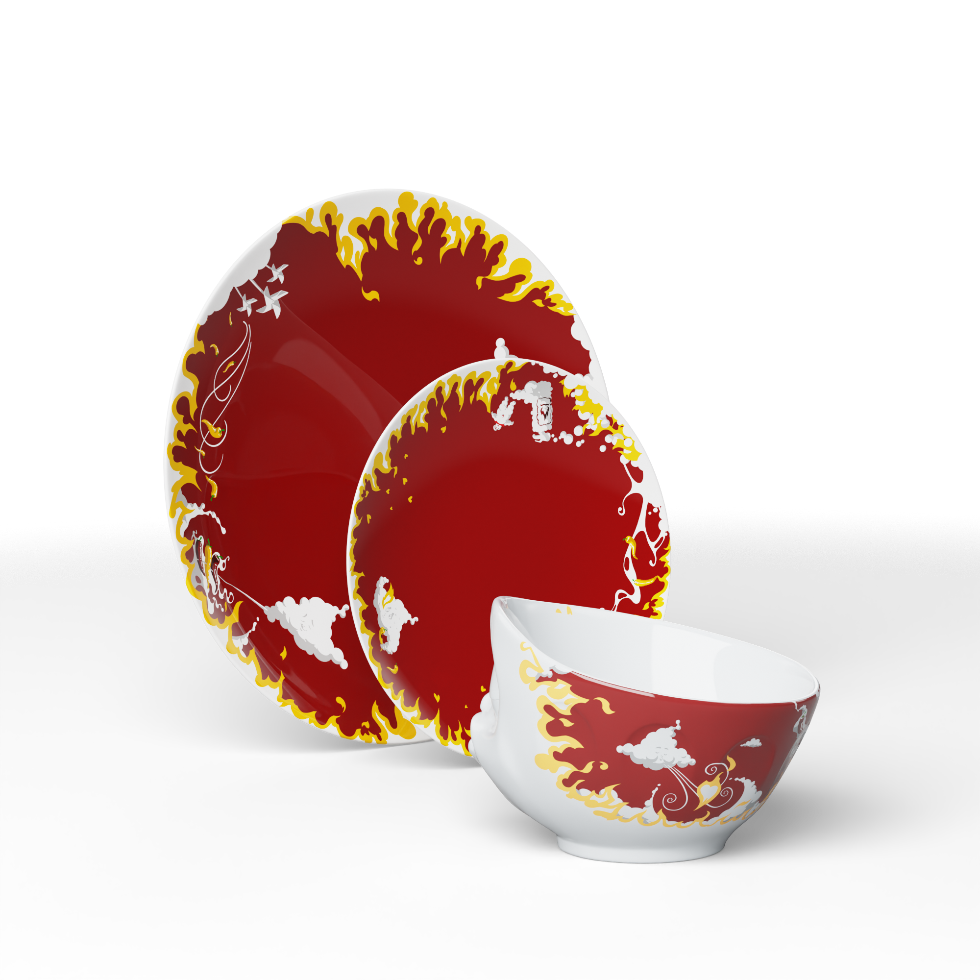 The bowl, dessert plate, and dinner plate create a vibrant HOT decor that lights up any table.