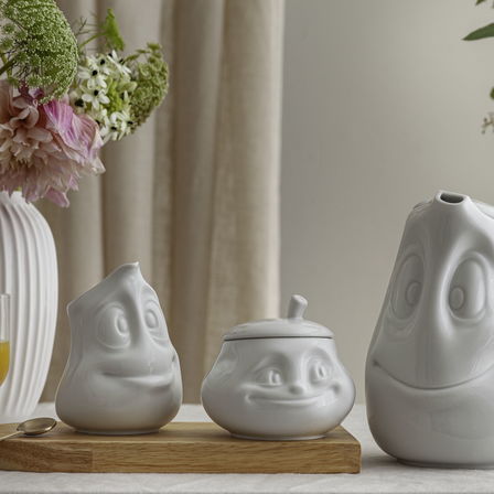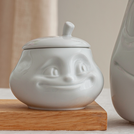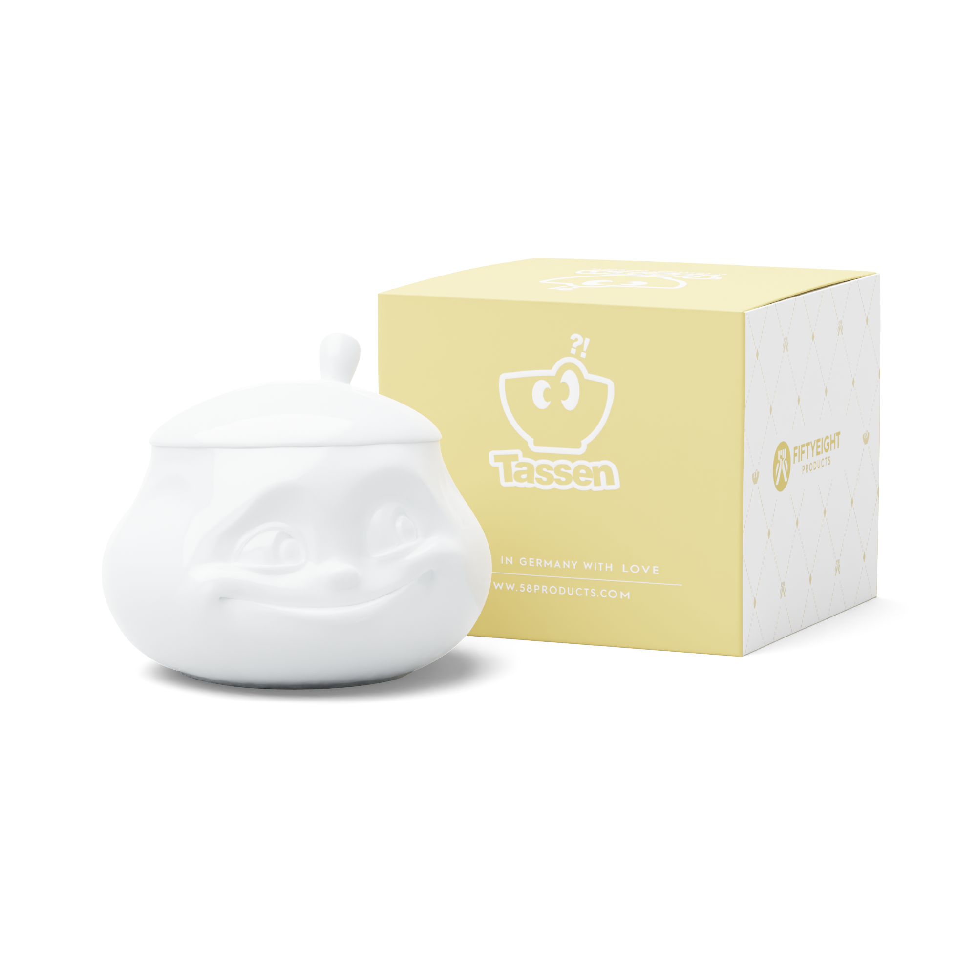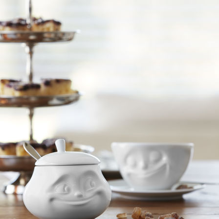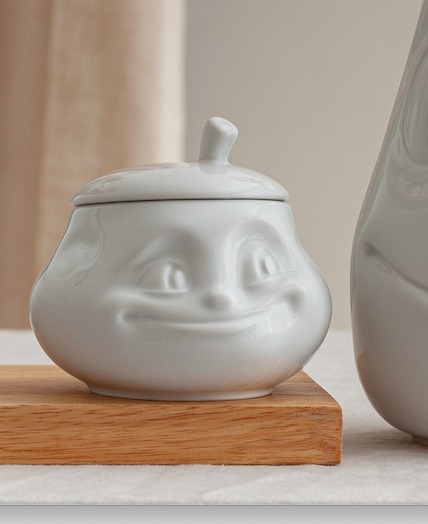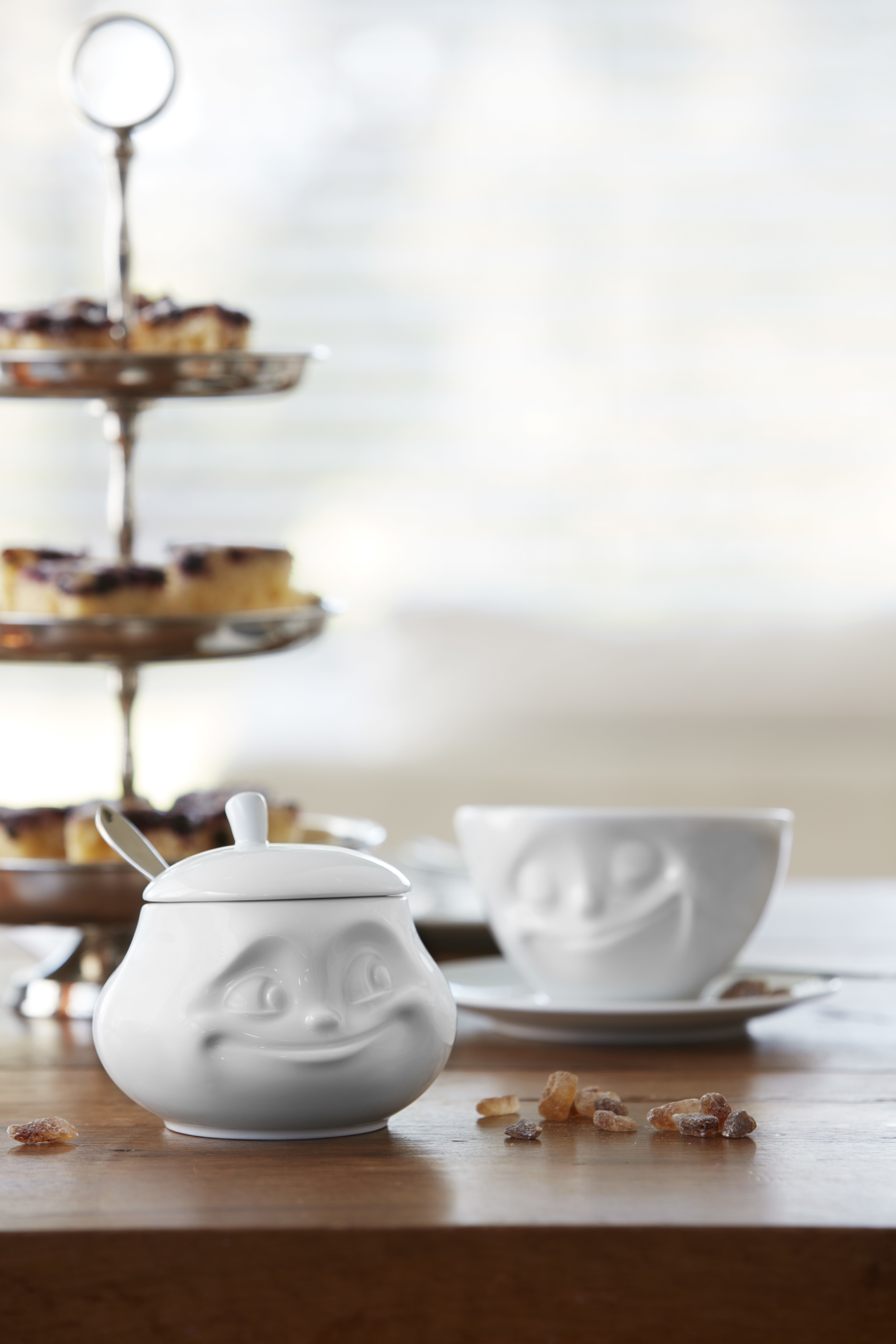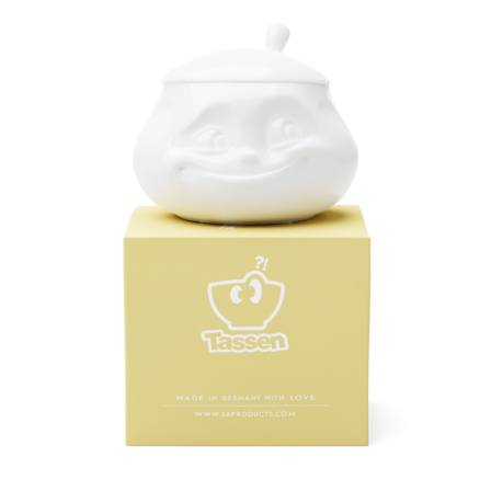 As the special kicker, the “Sweet” Sugar Bowl includes a small cavity underneath the lid to snuggly t a spoon. This enables a tight enclosure even with the spoon on the inside, which makes the bowl perfect for serving more than sugar: jam, honey, mustard, ketchup, parmesan cheese, and spices of all kind stay fresh in the porcelain bowl with the cute smile.