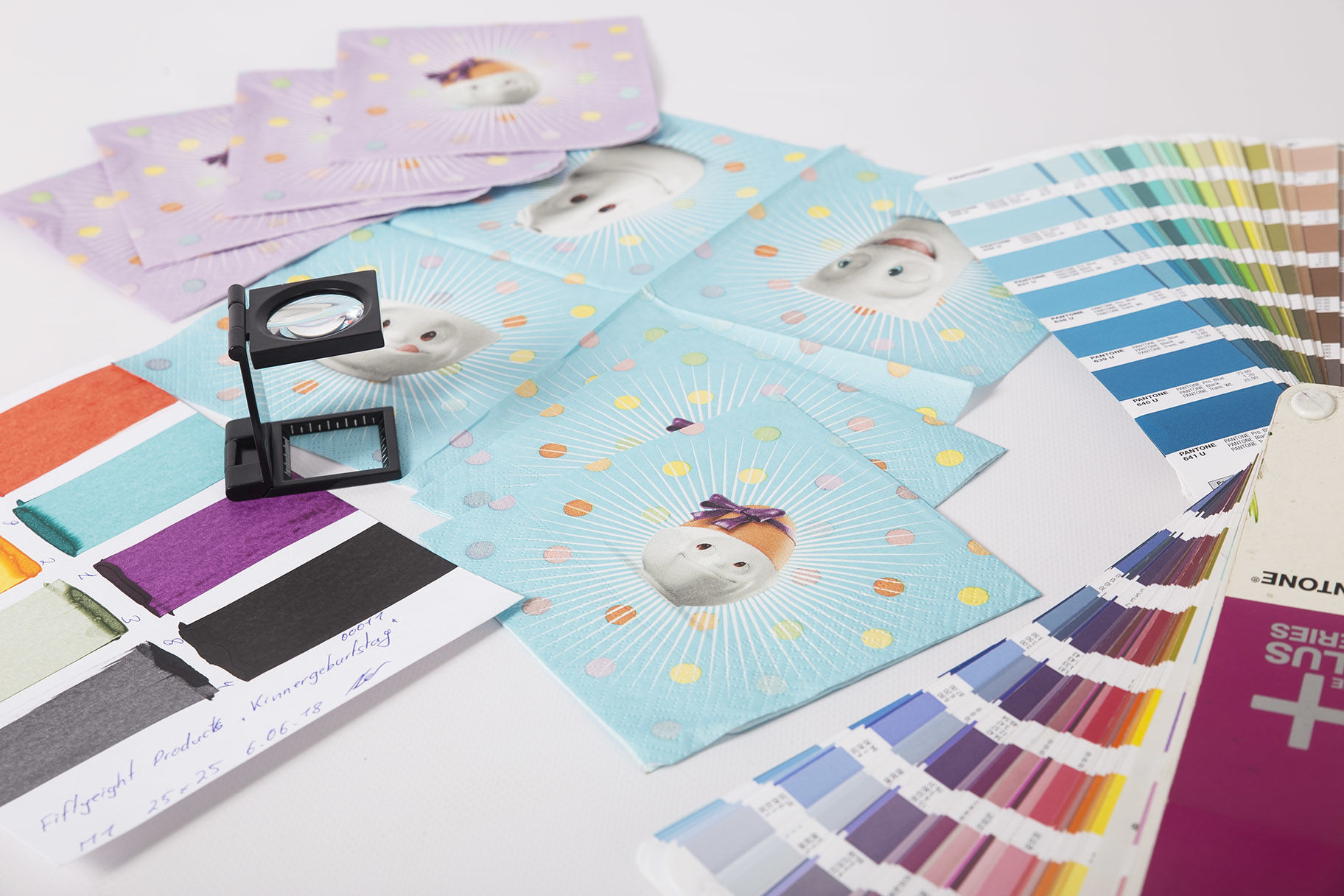 In order to maintain full quality control over the six new napkin designs, FIFTYEIGHT designer Peer Koch even made the trip to the printing workshop in the Erzgebirge mountains. For instance, the napkin design “Face Pastrami” shows a close-up of TASSEN dishware on an all-white background. “That makes optimal color rendering with the subtle tones of gray extremely hard to achieve without making it look dotted or even dirty. Plus, the material’s extreme absorbent properties are not necessarily making things easier,” says Peer. That’s why he used the on-site visit to discuss the perfect color tones with the expert paper manufacturers.