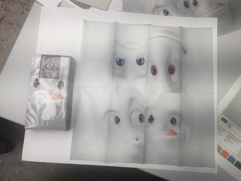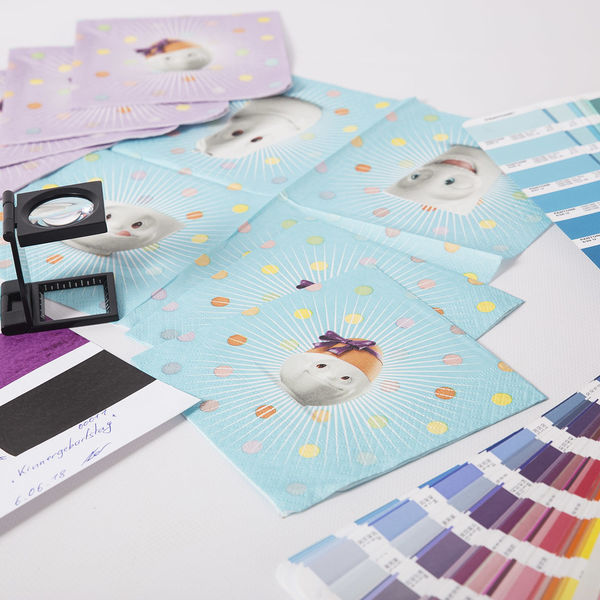 In order to maintain full quality control over the six new napkin designs, FIFTYEIGHT designer Peer Koch even made the trip to the printing workshop in the Erzgebirge mountains. For instance, the napkin design “Face Pastrami” shows a close-up of TASSEN dishware on an all-white background. “That makes optimal color rendering with the subtle tones of gray extremely hard to achieve without making it look dotted or even dirty. Plus, the material’s extreme absorbent properties are not necessarily making things easier,” says Peer. That’s why he used the on-site visit to discuss the perfect color tones with the expert paper manufacturers.