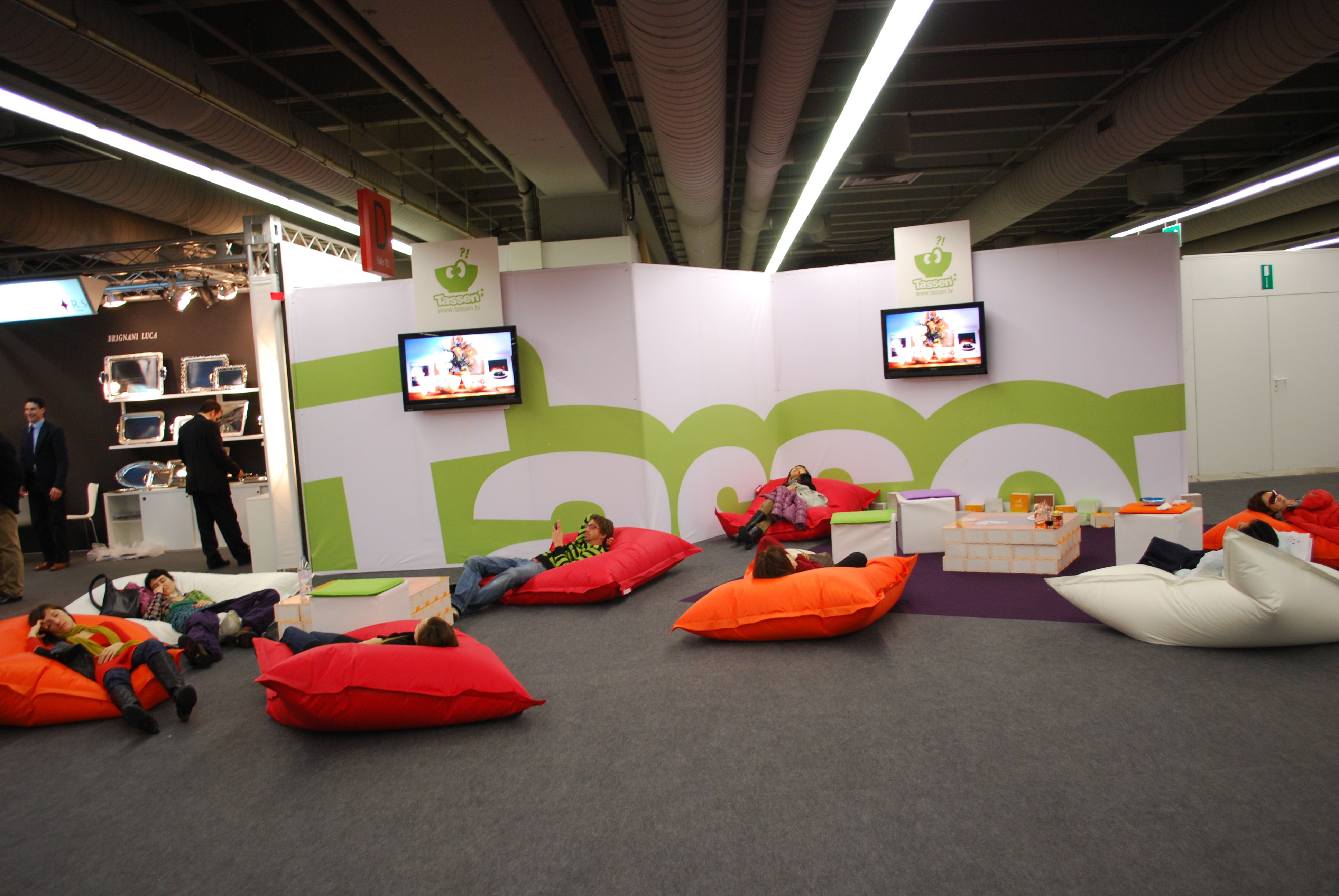 Just like previous trade show editions, this year's TASSEN booth was created with chilling out and relaxing from the stressful trade fair environment in mind. Since this year's theme for the show was "Ambiente goes City," many exhibitors cooperated with retailers around Frankfurt who offered to present their goods at their stores. This is how our TASSEN received the honor of showcasing our goods at the store of upscale audio specialists Bang & Olufsen at their Schillerstrasse location. And as it turned out, we also managed to score an extra TV screen for our booth. That's what we call a win/win situation!