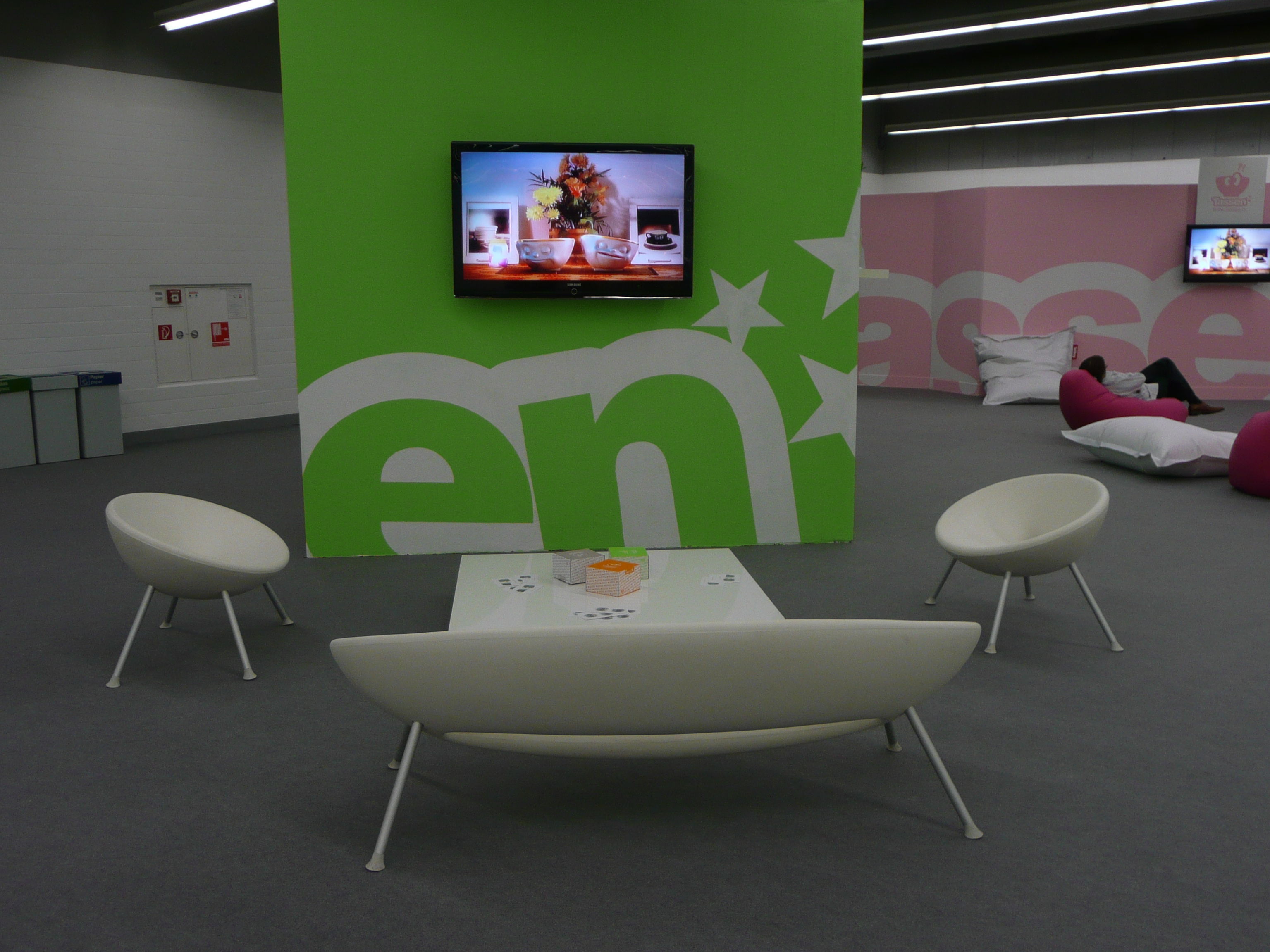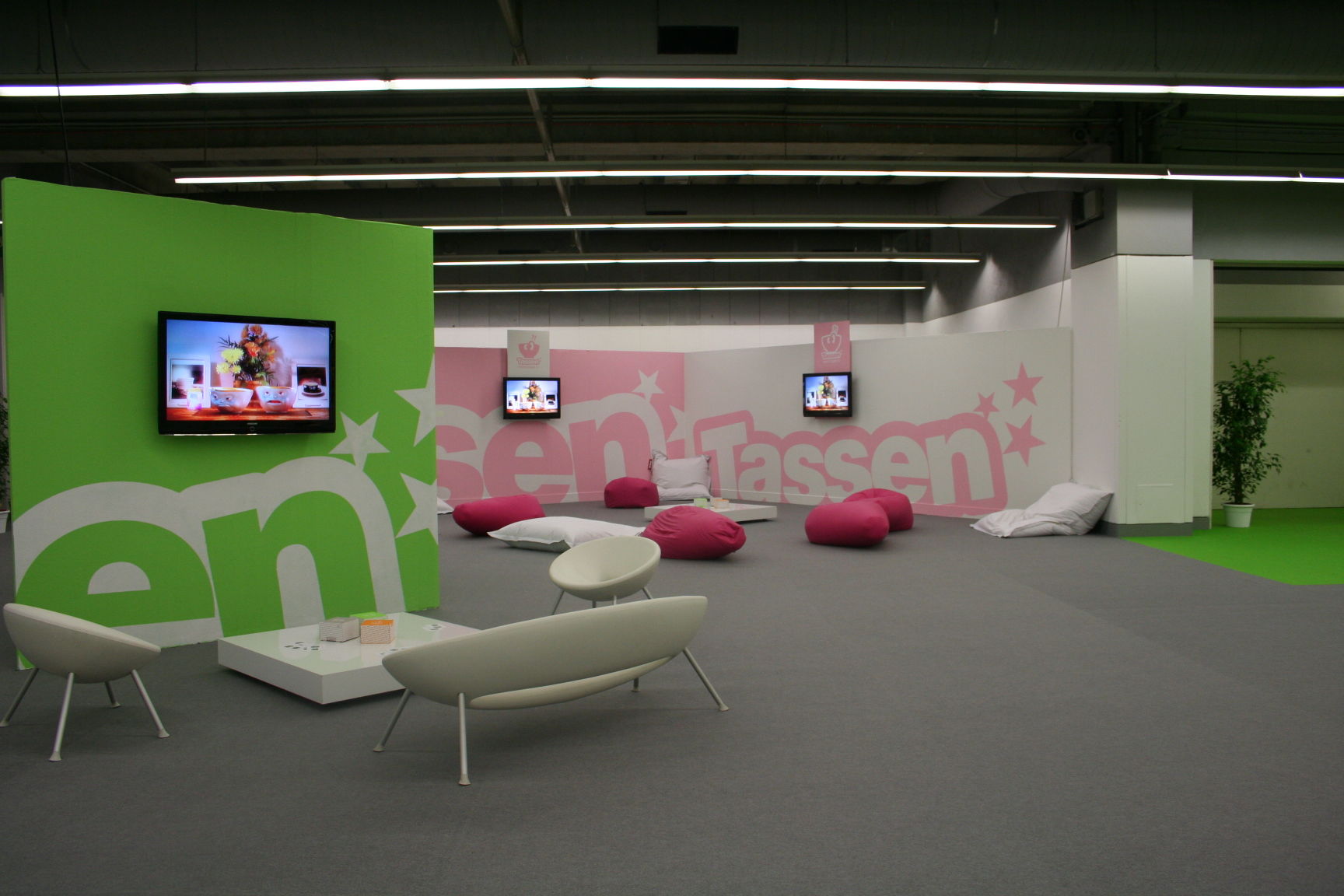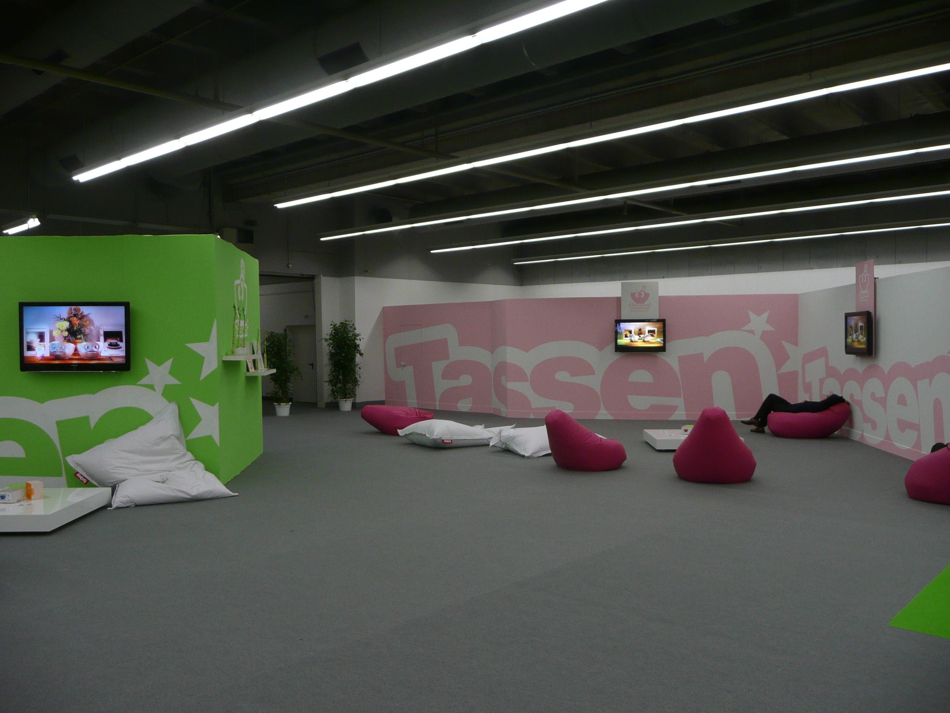 Talk about doing it big. At the 2008 edition of Decorate Life tradeshow (today called "Tendence"), we continued our special cooperation with the Frankfurt Fair Centre and designed a large chill out area with special TASSEN animated movies on display. The real kicker was that we had 300 sq. meters to play with this year – enough room for some major chilling out.