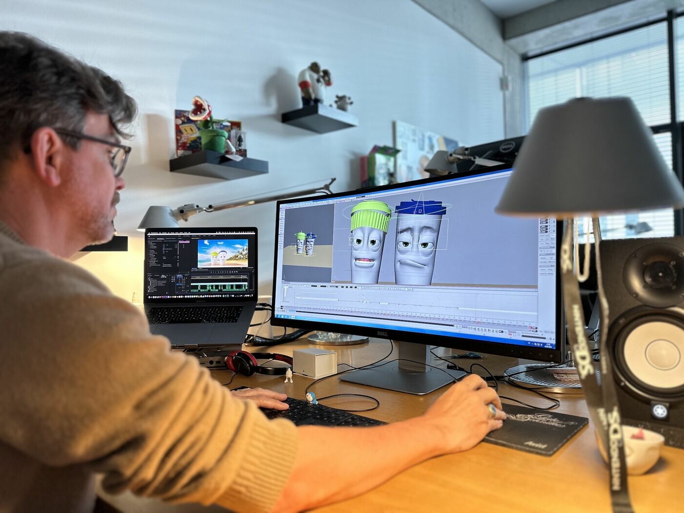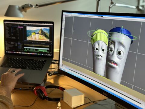 We haven’t yet mentioned the main actors in our next film out of sheer excitement. Paul and Henry, two travel mugs, have just realised that they’ve been chosen to finally go out and see the big wide world. The pair hasn’t seen much so far, other than a petrol station in Offenbach. Mühlheim is probably next on the agenda. So there’s lots of fun to come.